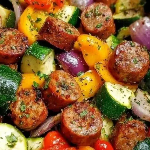 This dish uses chicken sausage and mixed veggies cooked in the air fryer for 10 minutes. It is low fuss and full of flavor. For the original recipe and exact timing, see the 10 Minute Air Fryer Chicken Sausage and Veggies recipe.