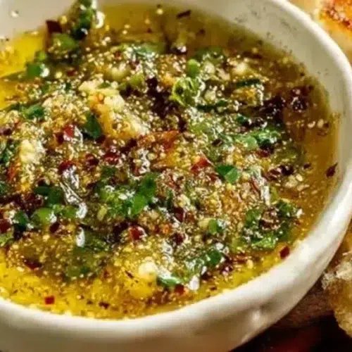 This dip is a no-cook mix of olive oil, minced garlic, grated parmesan, red pepper flakes, and fresh herbs with a pinch of salt. It tastes garlicky and rich, with a savory, cheesy backbone and a subtle spicy kick. The olive oil gives it a smooth, silky mouthfeel while the parmesan adds depth and slight creaminess as it softens. It’s special because it combines pantry staples into something that feels gourmet with almost no effort — true comfort food for busy nights, casual gatherings, or weekend brunches. The vibe is simple, rustic, and very shareable.