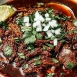 Beef Birria is best served with warm tortillas on the side. You can fill the tortillas with the shredded beef and top them with chopped onions and fresh cilantro for added flavor. It also pairs well with a side of rice or beans, making it a complete meal. For a fun twist, serve it with a dipping bowl of the flavorful broth.