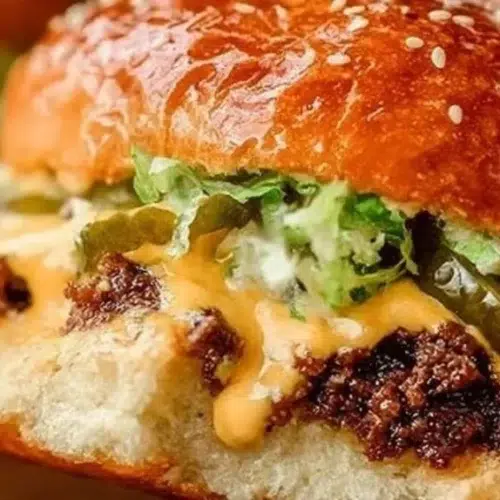 These small, stackable Big Mac Sliders pack the classic savory-sweet flavor of a Big Mac into a weeknight-friendly bite. You get juicy seasoned beef, melty cheddar or American cheese, crisp shredded lettuce, tangy pickles, and a simple mayo-mustard-ketchup sauce layered on soft slider buns — all baked briefly so the cheese melts and the flavors meld. The texture is a satisfying mix of tender beef, gooey cheese, crunchy lettuce and pickles, and pillowy bread. They’re quick to pull together, easy to scale for a crowd, and work well as game-day finger food or a casual family dinner. For a small change, serve with extra sauce on the side for dipping or stack two sliders for a heartier sandwich. If you want a different format, try a Big Mac wrap variation at Big Mac wraps.