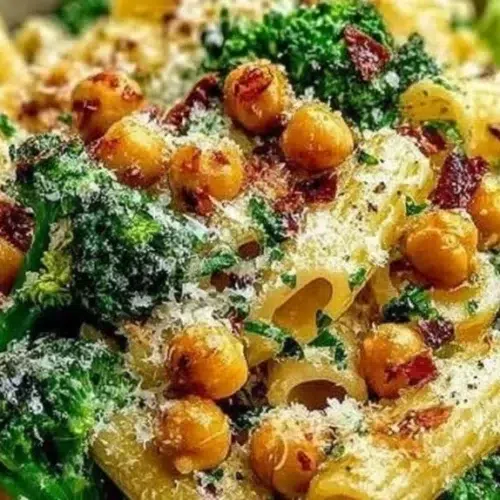 This Broccoli Chickpea Pasta with Garlic Olive Oil blends bright garlic, tender broccoli, and hearty chickpeas into a simple, satisfying weeknight meal. The pasta is al dente and lightly coated in fragrant olive oil, with a touch of lemon for brightness and red pepper flakes for a little bite. Texture plays between tender-crisp broccoli, creamy chickpeas, and firm pasta for a balanced mouthfeel. It’s fast, pantry-friendly, and easy to scale for two or a crowd. Serve with extra Parmesan and a green salad for a complete meal, or try it next to roasted chicken for a heartier plate. For a different take, you can compare this to a quick broccoli and chickpea stir-fry that uses similar flavors.