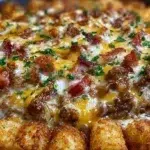 Cowboy Beef Tater Tot Casserole is a comforting and hearty dish that brings the flavors of the Wild West right to your dinner table. It’s easy to make and combines savory ground beef with creamy ingredients and crispy tater tots. Perfect for family dinners, game nights, or even potlucks, this casserole is sure to please everyone’s taste buds.