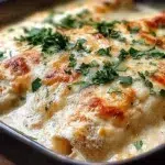 Pour remaining white sauce evenly over rolled enchiladas, ensuring they’re completely covered. Sprinkle remaining Monterey Jack and cheddar cheese over the top for that golden, bubbly finish.