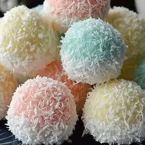 These little no-bake bites are called Easter Bunny Coconut Tails. They are sweet, soft inside, and covered in pastel coconut. Kids love them and they take little time to make. Try them for an easy Easter treat or a spring snack, and you can pair them with other coconut dishes like baked cod in coconut lemon cream sauce for a full meal idea.