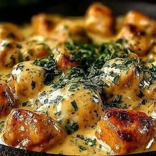 • Sprinkle dried parsley over the chicken and sauce. Top with caramelized onions if desired for added richness.