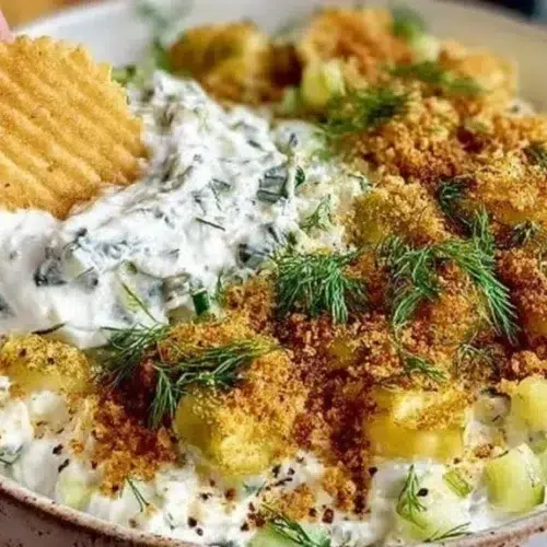 This Fried Pickle Dip is quick, tasty, and needs few ingredients. It is creamy and crunchy at the same time. It works well for parties, game days, or a simple snack.