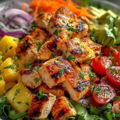 Hawaiian Chicken Salad is a vibrant, tropical-inspired dish featuring cooked chicken, fresh pineapple, and a colorful array of vegetables. The creamy dressing, made with Greek yogurt and a touch of honey, ties all the flavors together, creating a delightful balance of sweetness and savory goodness. This dish is perfect for warm-weather meals and has a light, refreshing vibe, ideal for brunch or as a tasty lunch that won’t weigh you down.