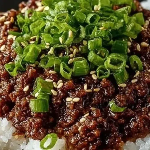 - Serve the beef over cooked rice, top with sliced green onions and optional sesame seeds.