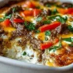 A delicious and comforting low carb casserole that brings the classic Philly cheesesteak flavors to your table, loaded with ground beef, bell peppers, and cheese.