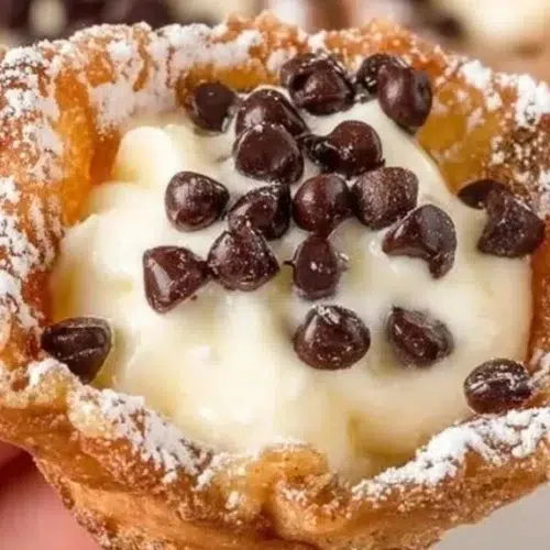 Mini Cannoli Cups are bite-sized desserts that take the essence of traditional Italian cannoli and simplify it. Instead of rolling fried shells and piping filling, this version uses mini phyllo pastry cups as the shell and a sweet ricotta mixture as the filling. The taste is mildly sweet, creamy, and tangy from the ricotta, with small chocolate chips that add crunch and chocolate flavor. The texture contrast — flaky shell and smooth filling with chocolate bits — is what makes these cups feel special.