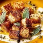 Serve the soup warm in bowls, topped with homemade croutons and a sprinkle of fresh herbs. It pairs perfectly with crusty bread or a simple salad on the side.