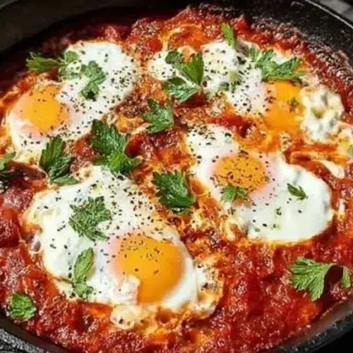 Serve straight from the skillet or move to plates. Offer crusty bread or pita to scoop the sauce and eggs. Add a small salad or plain yogurt on the side if you like.