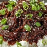 Serve Slow Cooker Korean Beef over a bed of fluffy rice. You can also add steamed vegetables on the side for a complete meal. Don’t forget to sprinkle some sesame seeds and chopped green onions on top for added flavor and presentation.