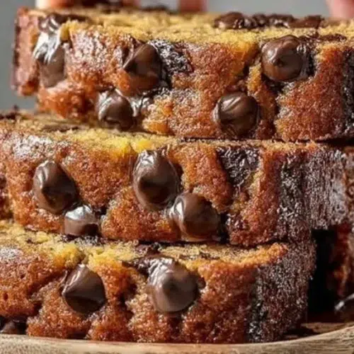 This chocolate chip banana bread is tender, rich, and truly super moist. The crumb stays soft from the mix of melted butter and vegetable oil, while mashed ripe bananas give it a deep banana flavor. Semi-sweet chocolate chips add bursts of melty sweetness in every bite, and the top forms a light golden crust that’s still soft inside. It’s an easy, one-bowl loaf you can pull together in under 15 minutes of prep. Serve slices warm with a smear of butter or a scoop of vanilla ice cream for a quick dessert or a cozy breakfast. For full step-by-step photos and a similar method, see our detailed recipe page.