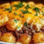 A classic comfort food, Tater Tot Casserole combines ground beef, creamy mushroom soup, and crispy tater tots, perfect for family dinners or potlucks.